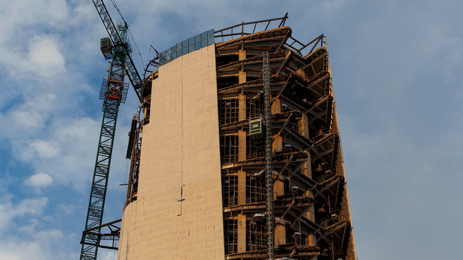 Construction workers at the Centinela Tower in October 2025.