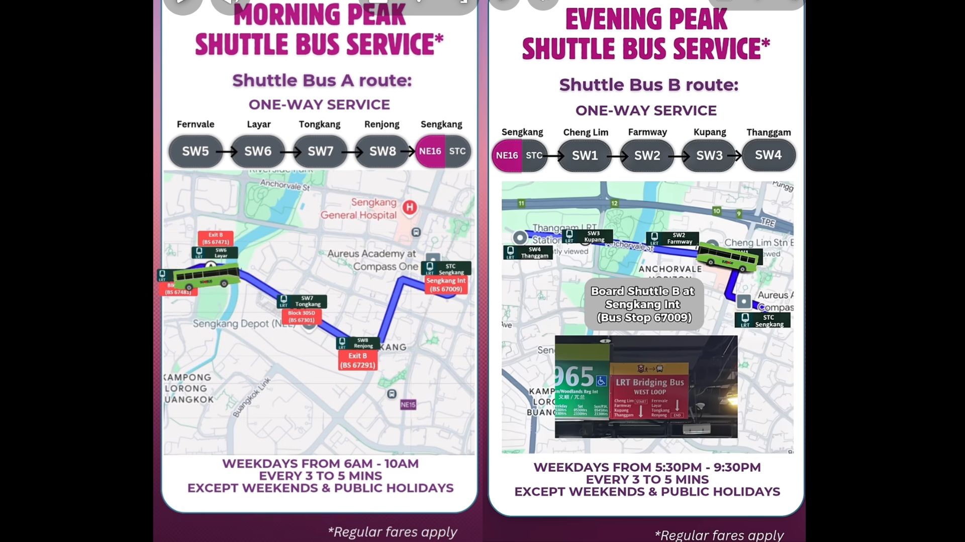 As reported by Yan.sg, these free shuttle buses have two simple routes that will aid commuters during rush hours. Route A will run from 6:00 am to 10:00 am from Fernvale station towards Layar, Tongkang, Renjong, and Sengkang stations. Furthermore, Route B will run from 5:30 pm to 9:30 pm from Sengkang station to Cheng Lim, Farmway, Kupang, and Thanggam stations.