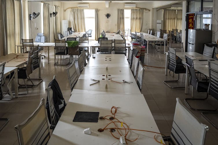 Empty compounds remain guarded, but we managed to visit one since the crackdown. While the computers, cameras and other items have largely been removed, the physical infrastructure remains intact and ready to be reactivated.