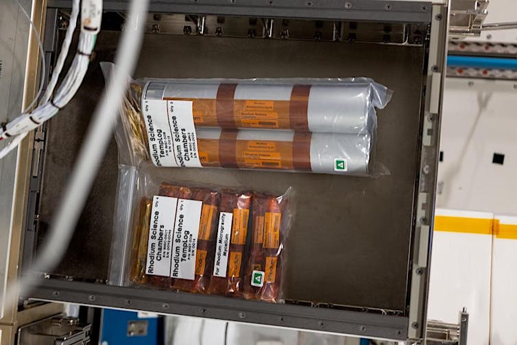 Our fungi may have stayed on the ISS with astronauts. But the mushrooms’ experience was very different to the astronauts’. Science experiments have special storage areas depending on what is being done and how much time astronauts have to be involved. Our mycelium was sealed up tight in special packaging to help keep them at a stable temperature and to ensure they weren’t damaged.